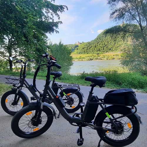 Mittlerweile haben die Bikes schon mehrere Touren hinter sich. Ergebnis: Fahrspaß pur! Vor allem auf Schotterpisten oder Feldwegen, also abseits der gewohnten Fahrradrouten. Deshalb wird die Reinigung des Bikes zu einem Hauptproblem 😆. Die Reichweite ist genial, selbst mit starker Motorunterstützung sollten 100 km kein Problem sein. Bei 50 km haben wir ca. 40 % Akkuleistung verbraucht.